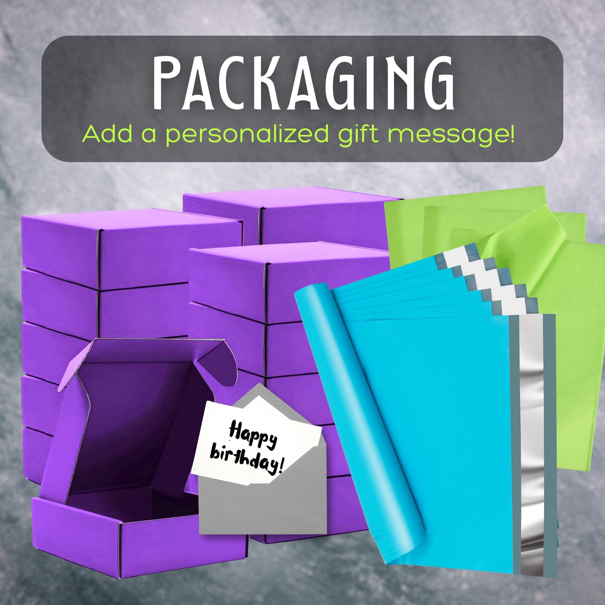 All orders come packaged in holographic bags inside poly mailers or boxes, depending on the order size. Send me a message if your order is a gift and you'd like a custom notecard included in the packaging!