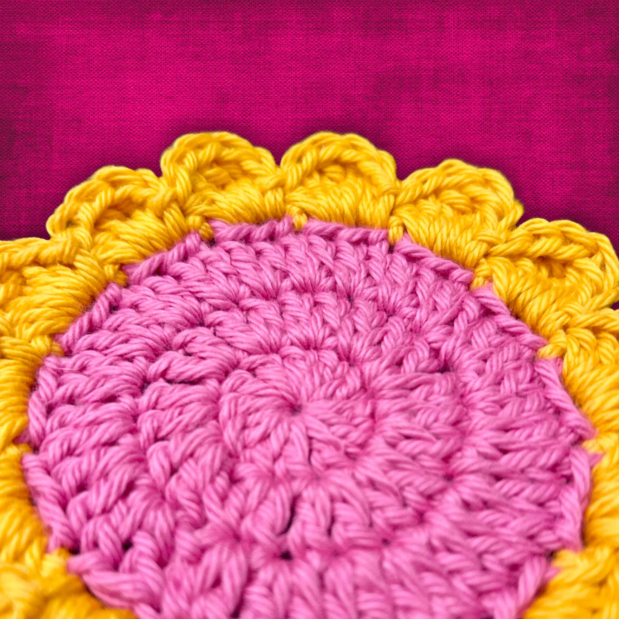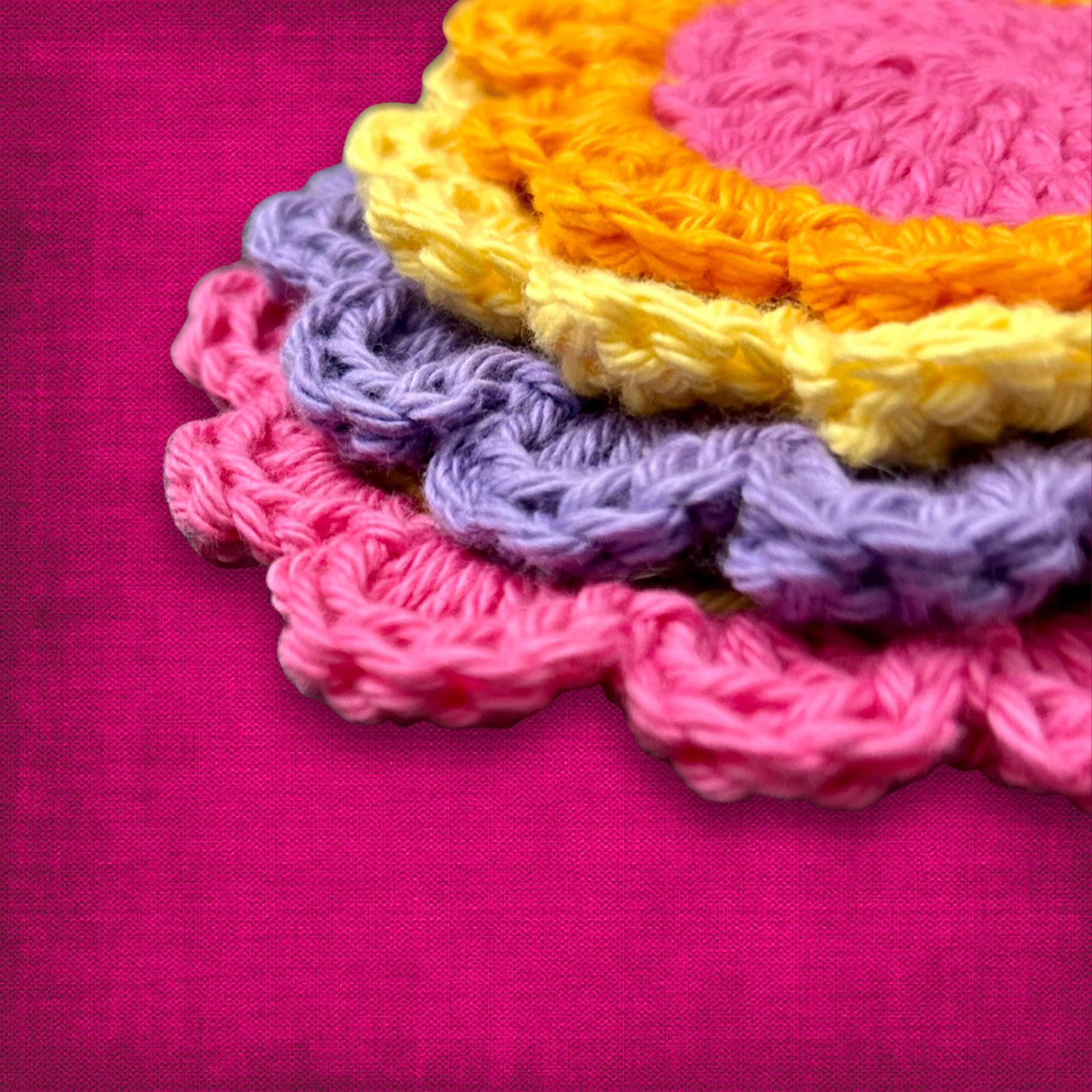 Bright Flower Coaster Set Floral Home Decor Pink Yellow Orange Purple Crocheted Cotton