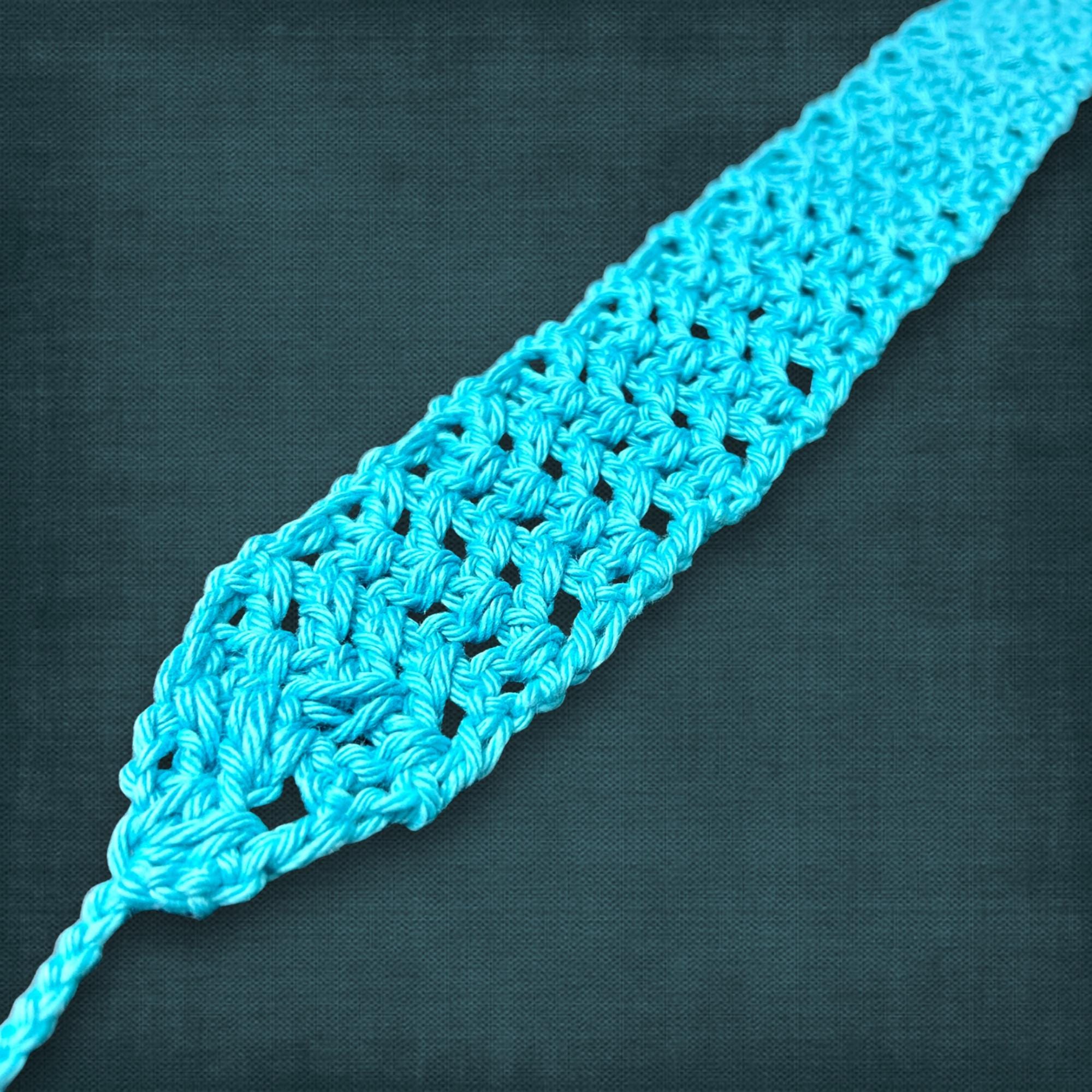 🟣 This breathable headband is perfect for warm weather days! It's made from 100% cotton yarn so you can throw it in the washer. It's a bright teal blue color and measures 2 IN or 5.1 CM by 29 IN or 73.7 CM. The yarn is lightweight and soft and very comfortable to wear all day!
