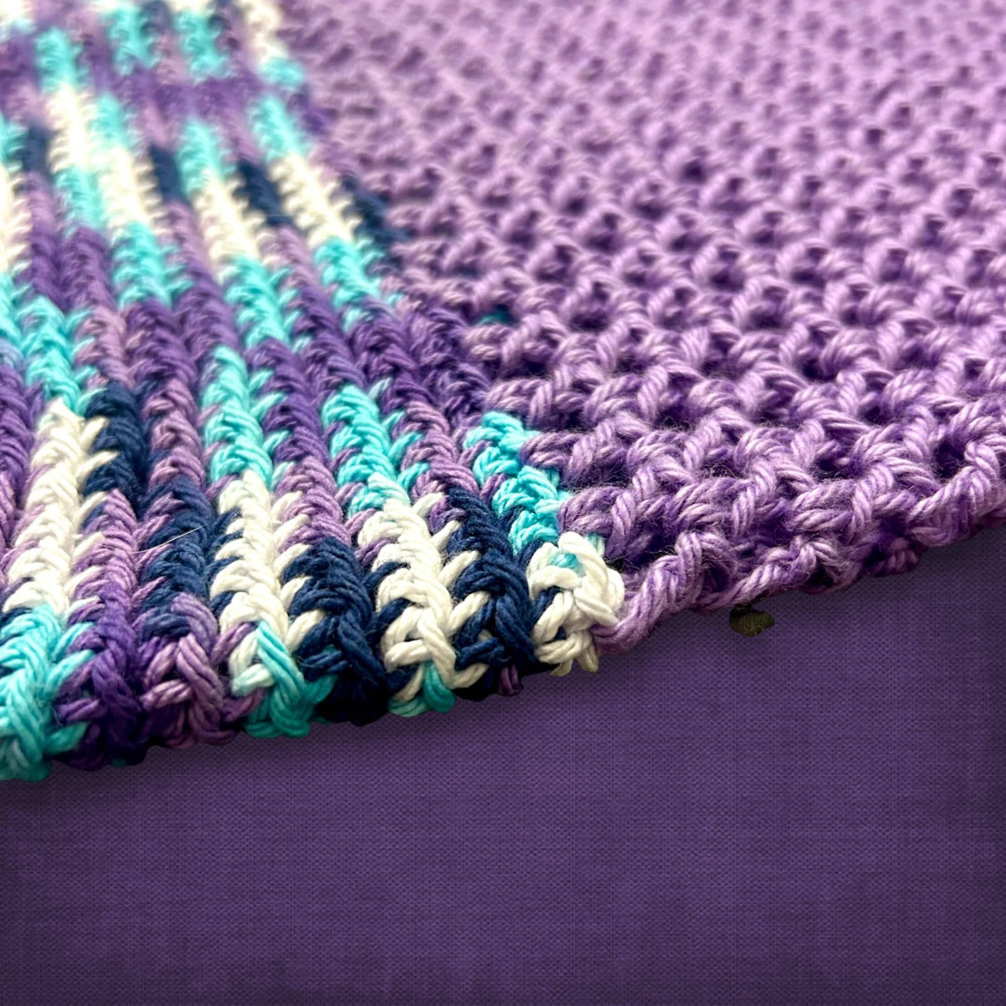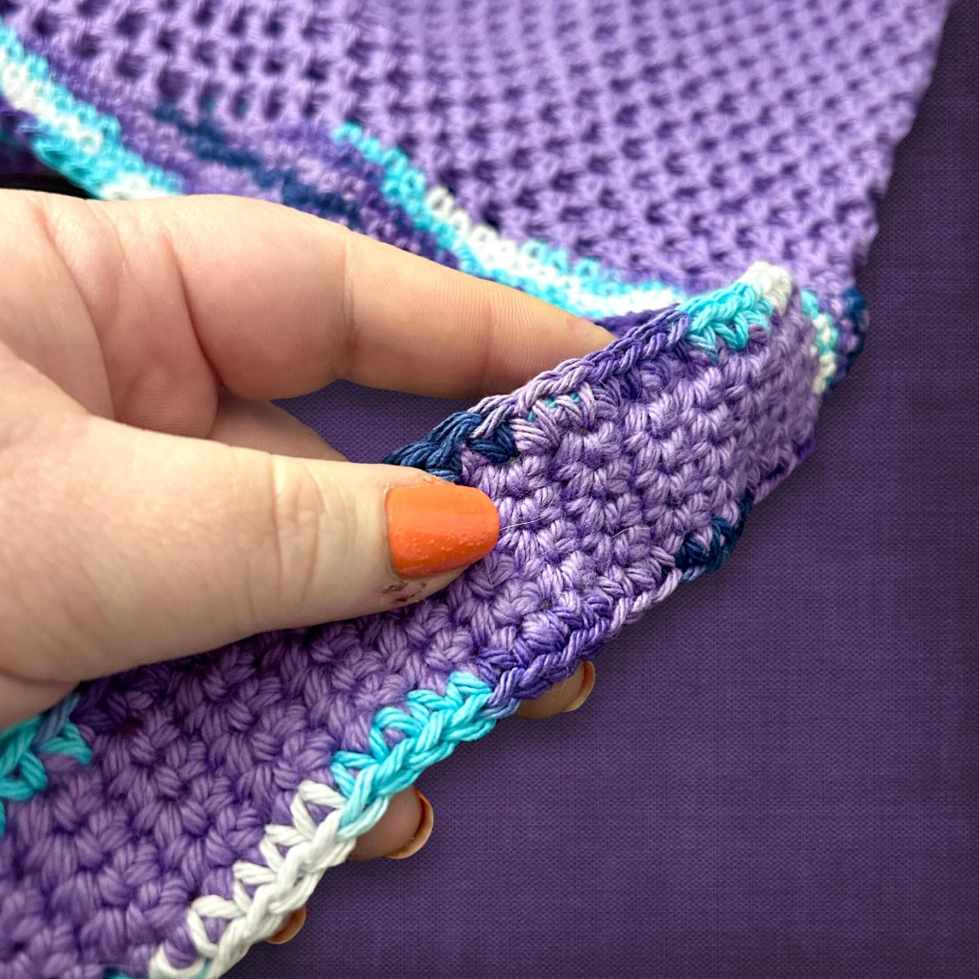 🟣 This soft cotton mesh bag is perfect for local markets. The bag expands to fit all your goodies! It's an environmentally friendly statement that says you support handmade artisans. This market bag's mesh body is a purple with a multicolor trim in white, blue, and purple. The strap stretches to accommodate any size arm (see photos for all measurements). It's machine washable since it's made from 100% cotton yarn.