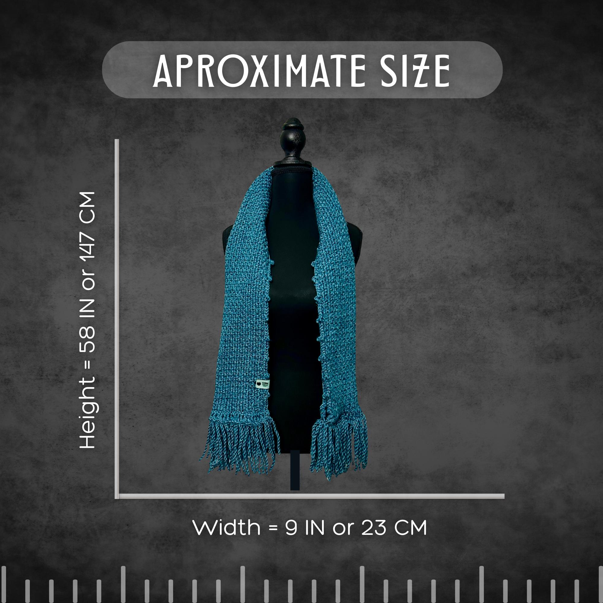 🟣 This scarf was inspired by the deep blue sea. I crocheted it using a moss stitch variation, then I added twisted fringe to the bottoms for a playful look. It's dark steel blue in color. See photos for measurements.
