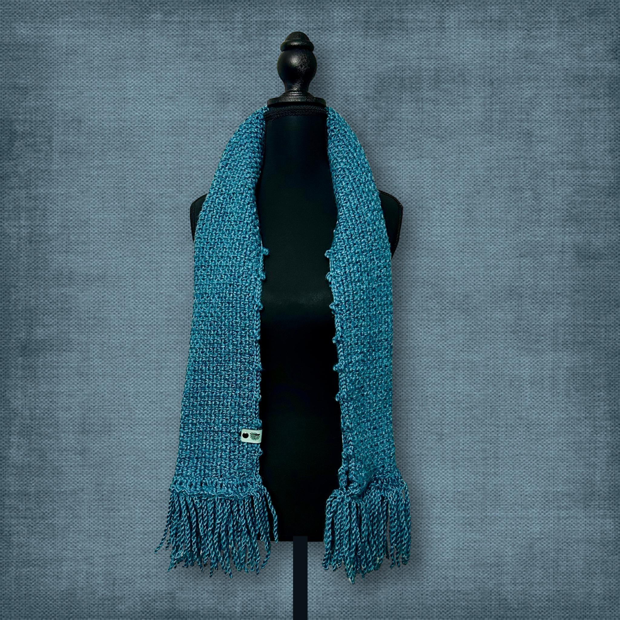 Deep Blue Sea Winter Scarf with Twisted Fringe Crocheted Machine Washable