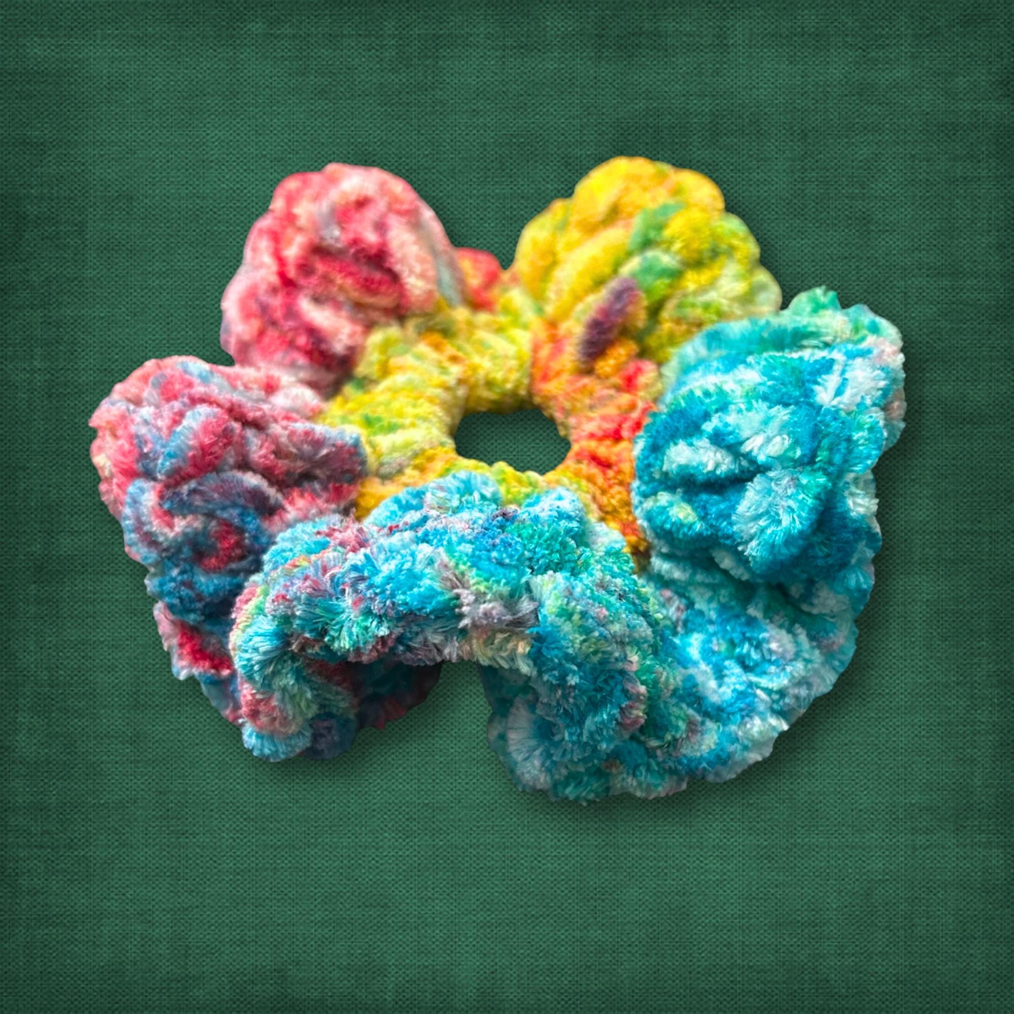 Large Tie-dye Scrunchie Multicolor Rainbow Hair Bun Wrap Style Soft Terrycloth Feel
