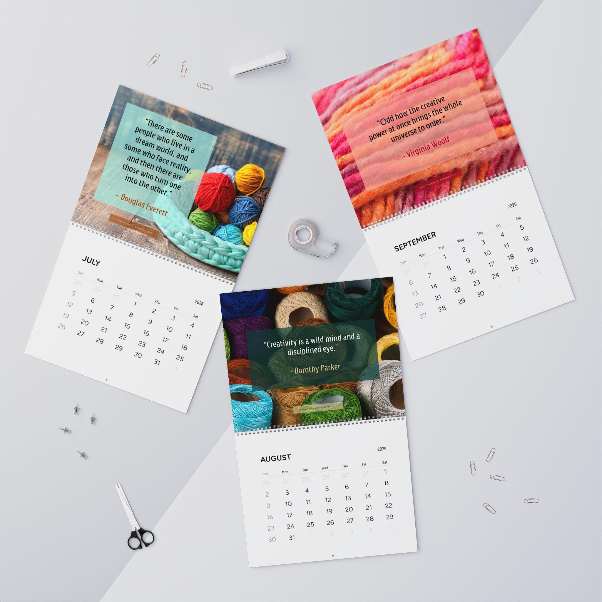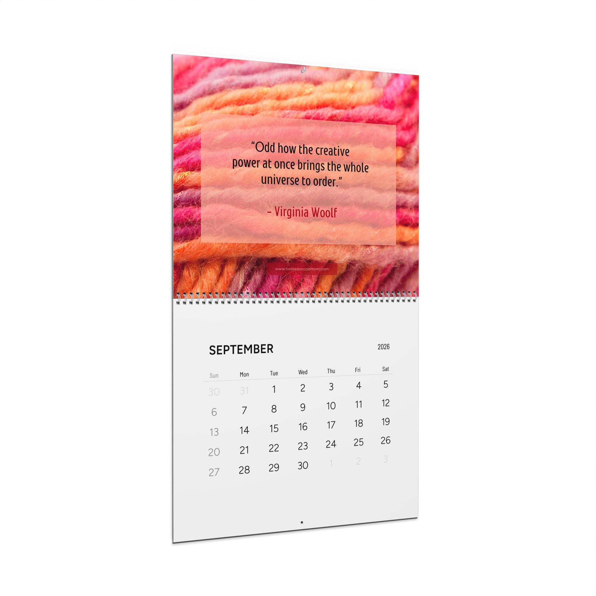 Embrace the new year with this beautifully designed Wall Calendar, perfect for adding a touch of inspiration to any creative space. Each month features vibrant images of yarn accompanied by motivating quotes from well known artists, creating a positive and uplifting atmosphere throughout the year.
