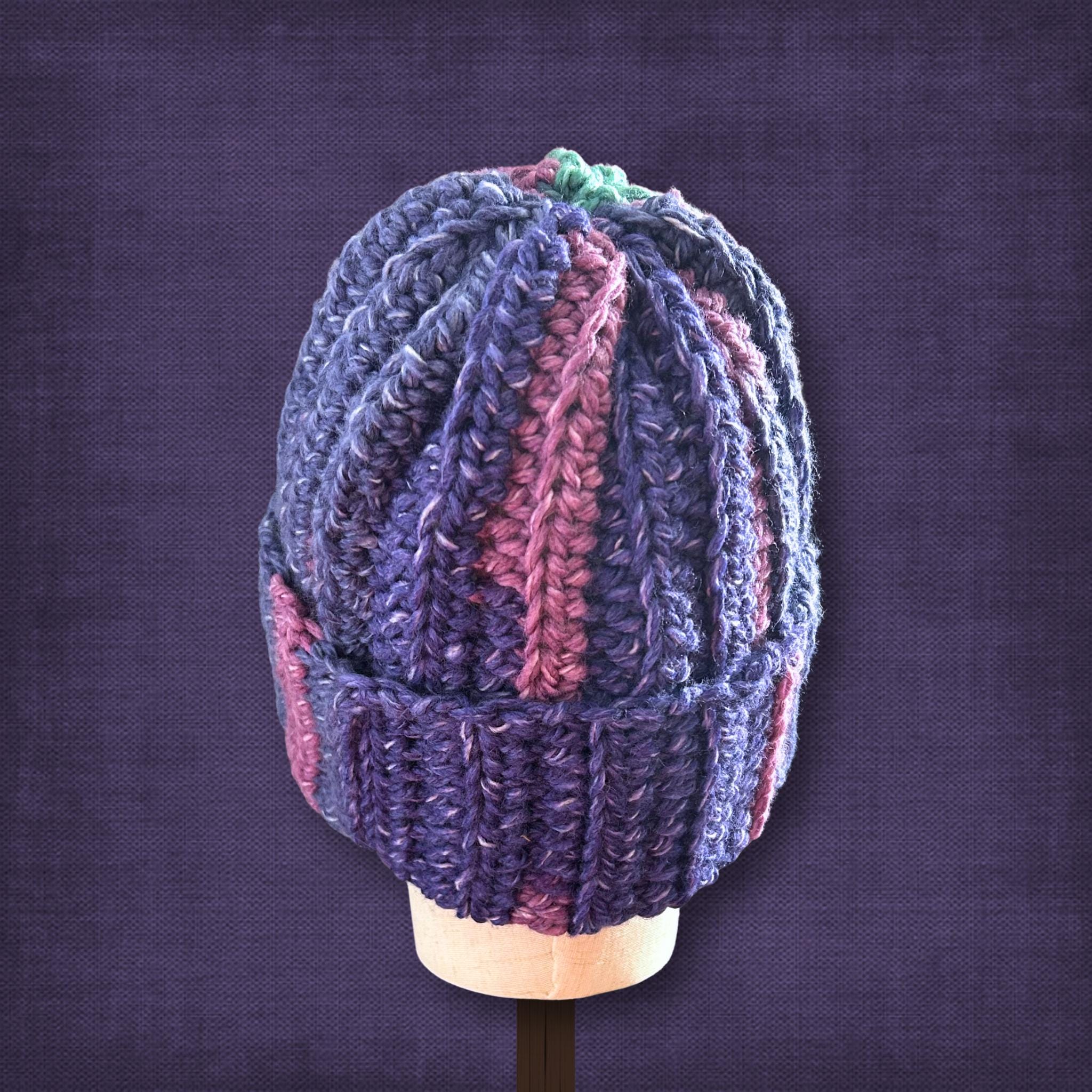 🟣 This had was handmade by me, Melissa Jane, using a ribbed crochet pattern inspired by multiple patterns I've seen over the years. I've been crocheting since 1991 after learning the craft from my great-grandmother. It means so much to me to carry on a family tradition and share it with the world!