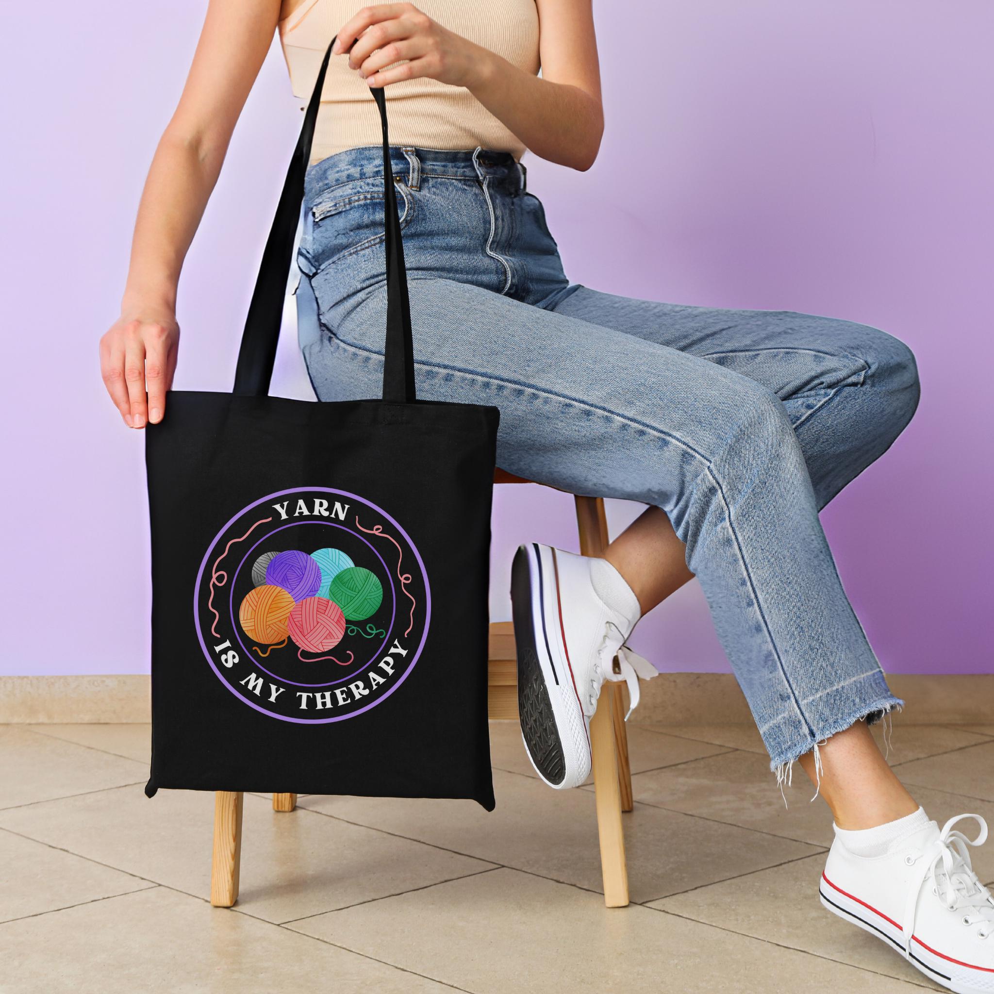 This canvas tote carries more than yarn — it carries your calm. Thick organic cotton canvas and long self-fabric straps make it sturdy enough for your heaviest project and soft enough to sling over your shoulder between crafting moments.