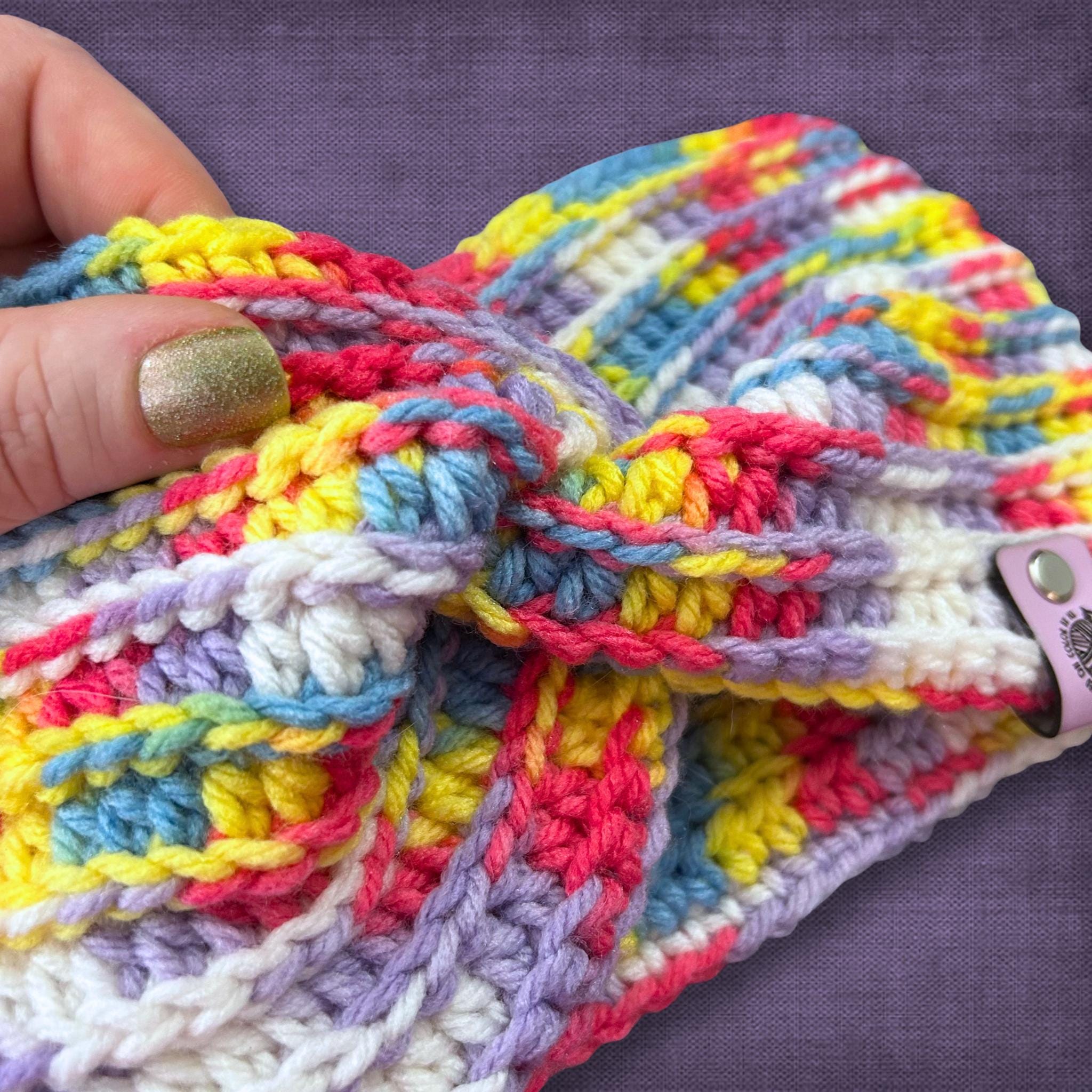 Adult M/L Ear Warmer Knotted Crocheted Winter Headband Multicolor Yellow White Purple Pink