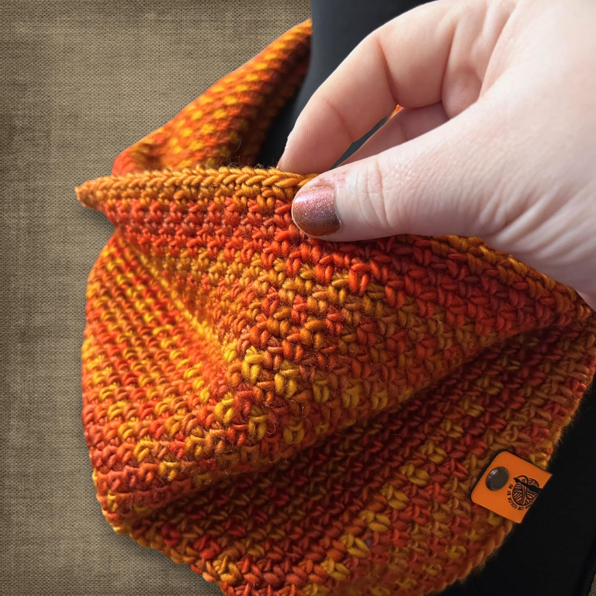 🟣 This cowl is almost every shade of orange. Definitely a subtle statement piece! It will fit both standard and plus sizes. It's also machine washable. See photos for measurements.