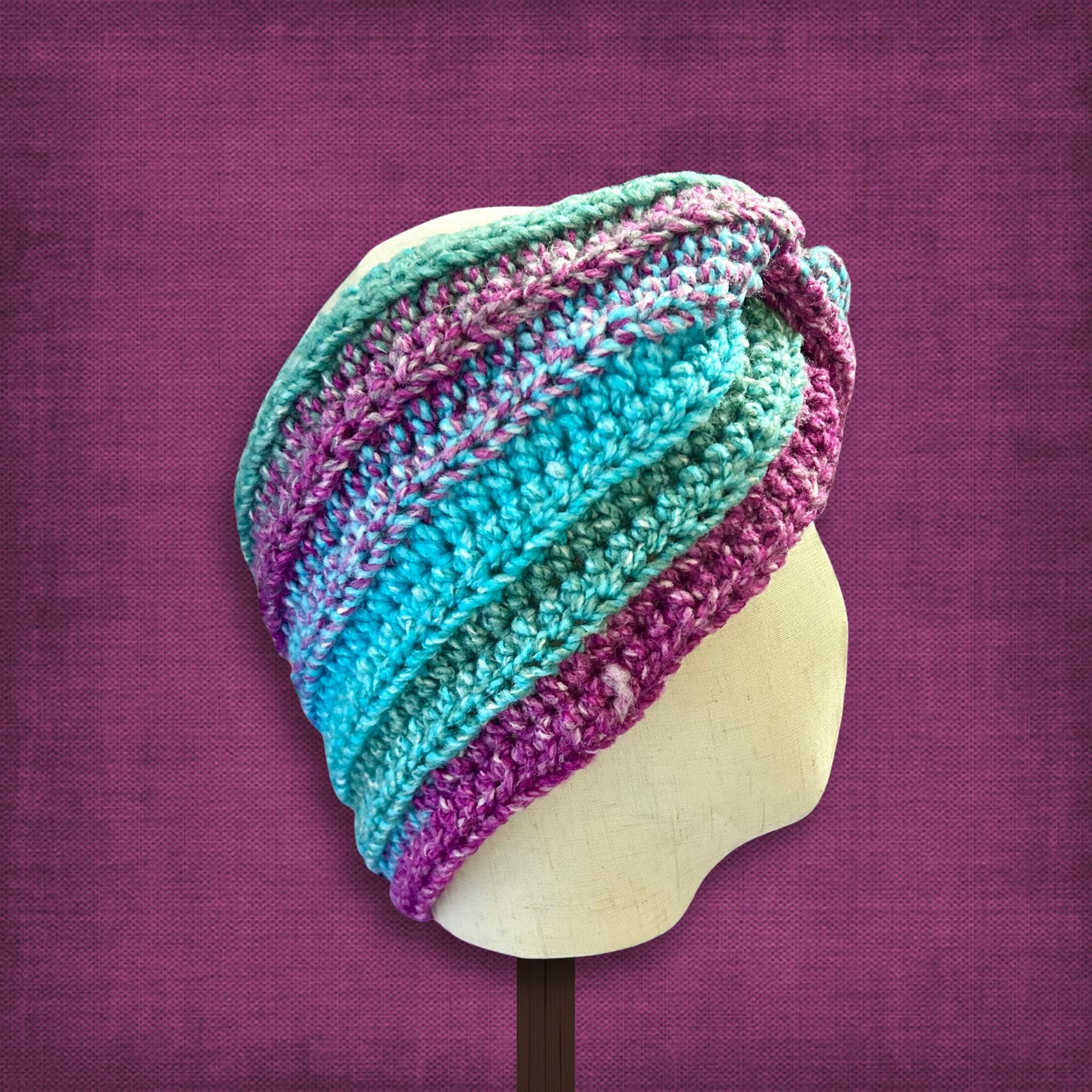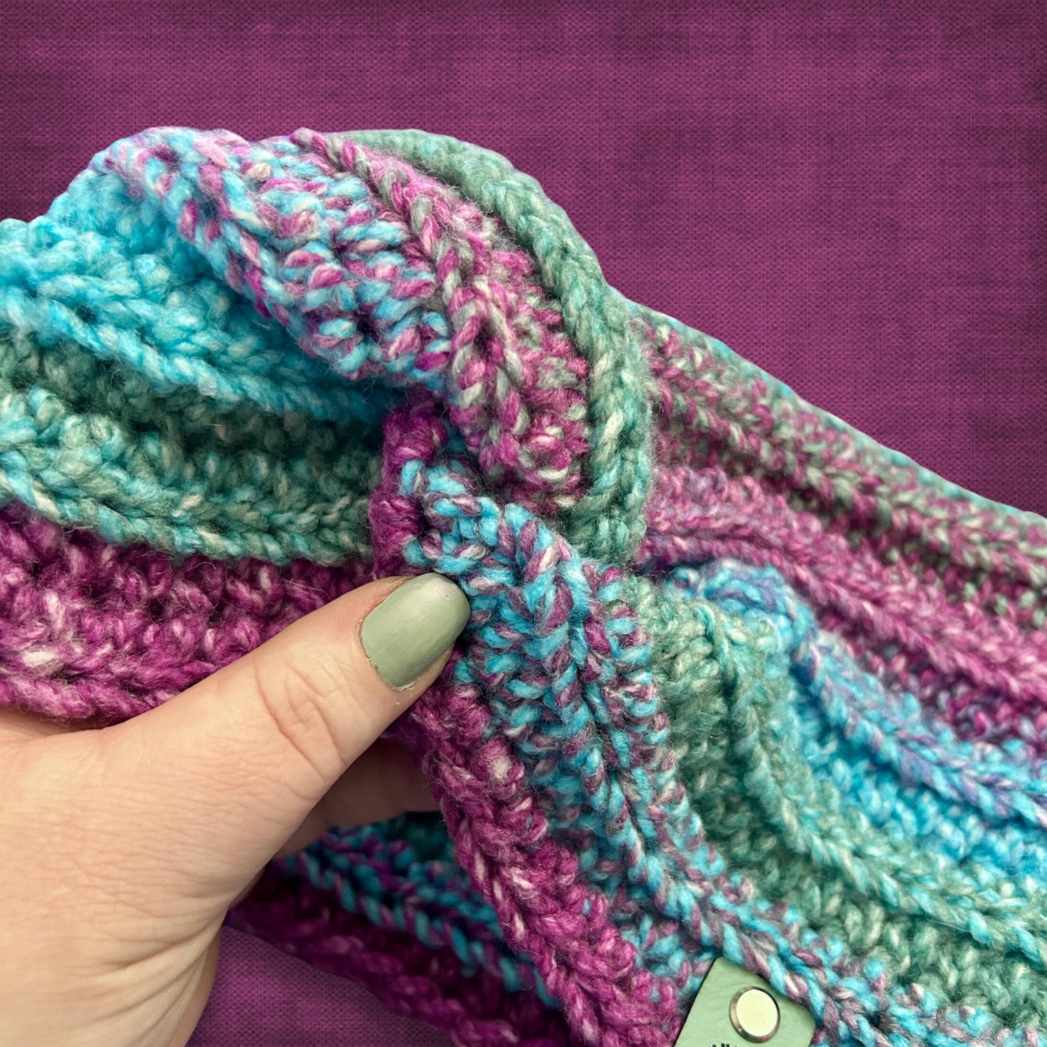 🟣 This had was handmade by me, Melissa Jane, using my own ribbed crochet pattern. I've been crocheting since 1991 after learning the craft from my great-grandmother. It means so much to me to carry on a family tradition and share it with the world!
