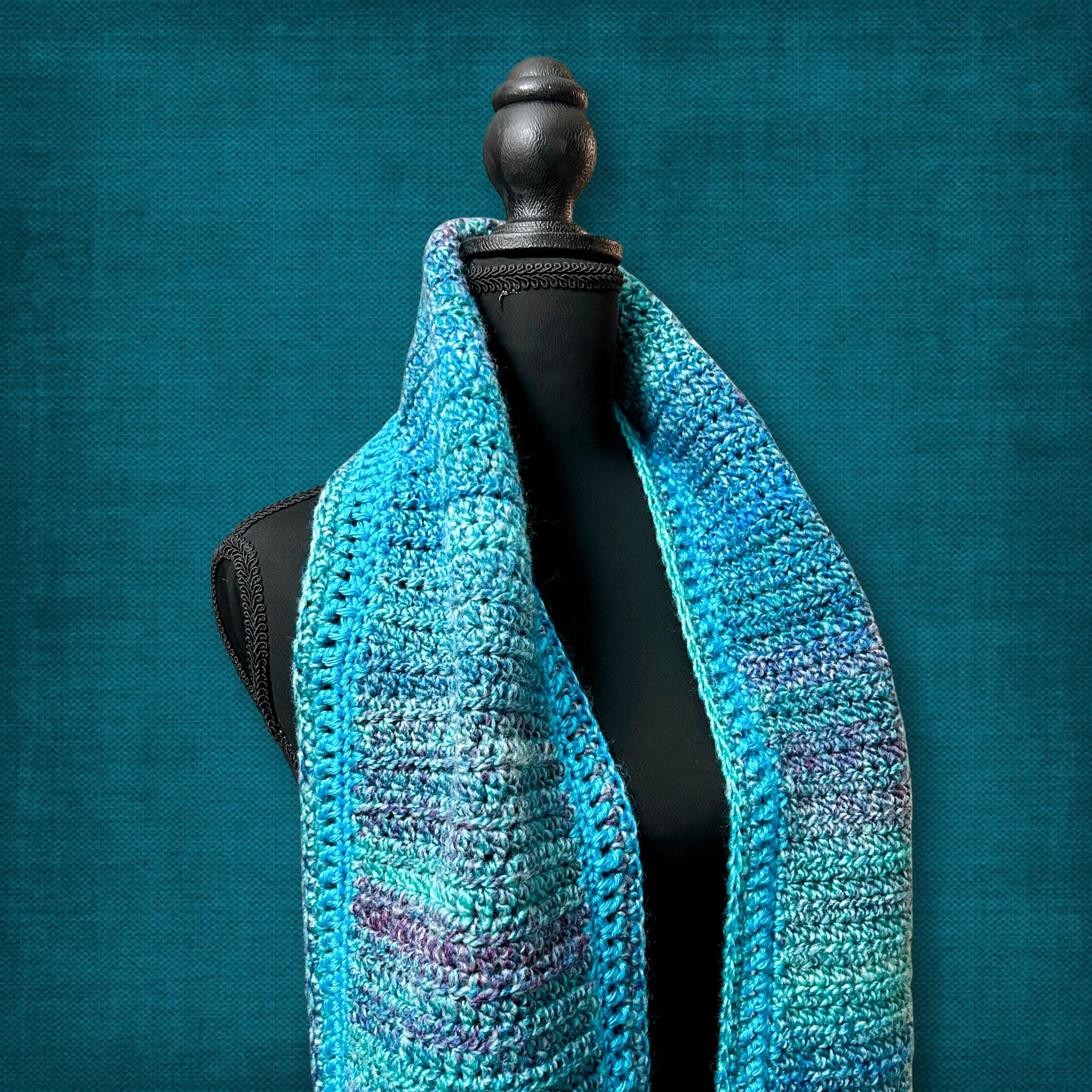 🟣 This soft scarf has many shades of blue and green, which is perfect for winter. It's long enough for tall people, too! See photos for measurements.