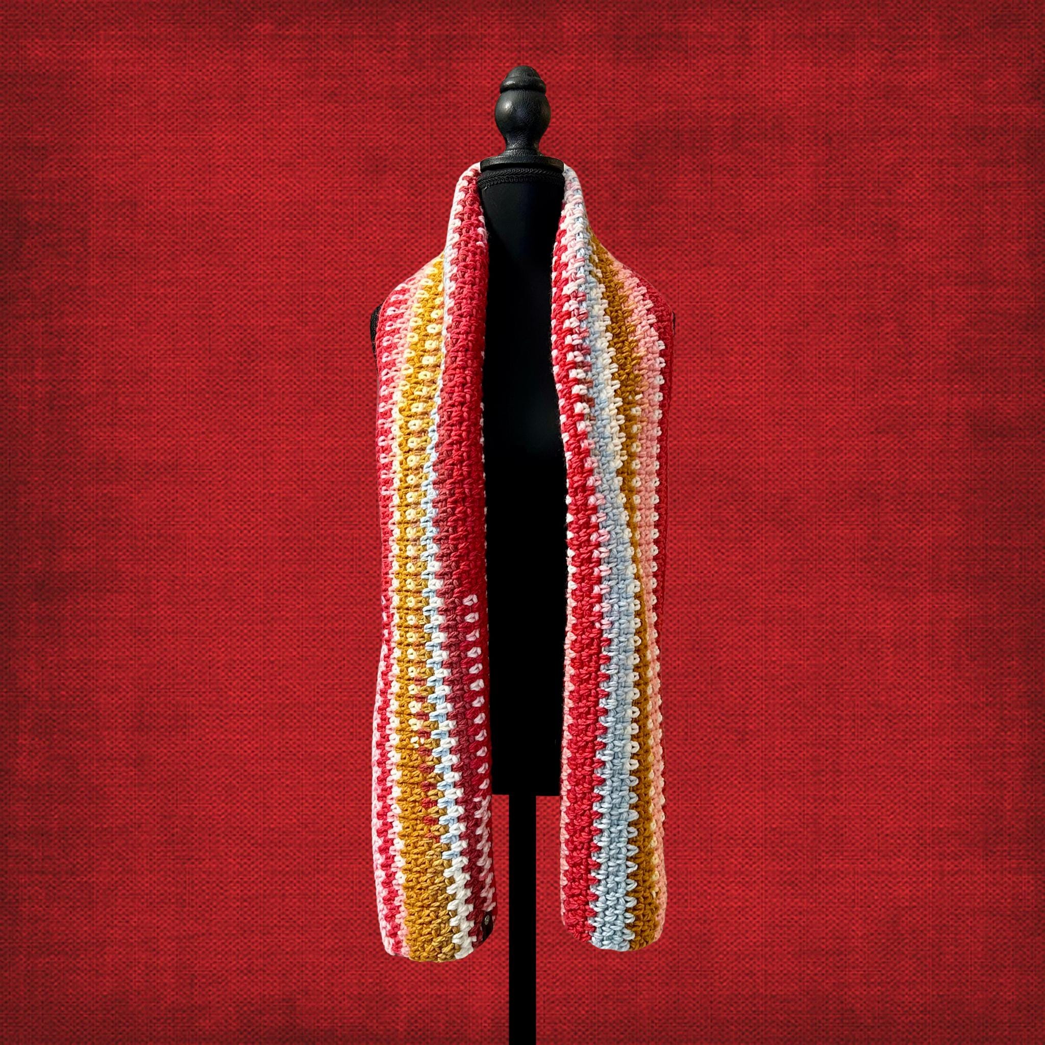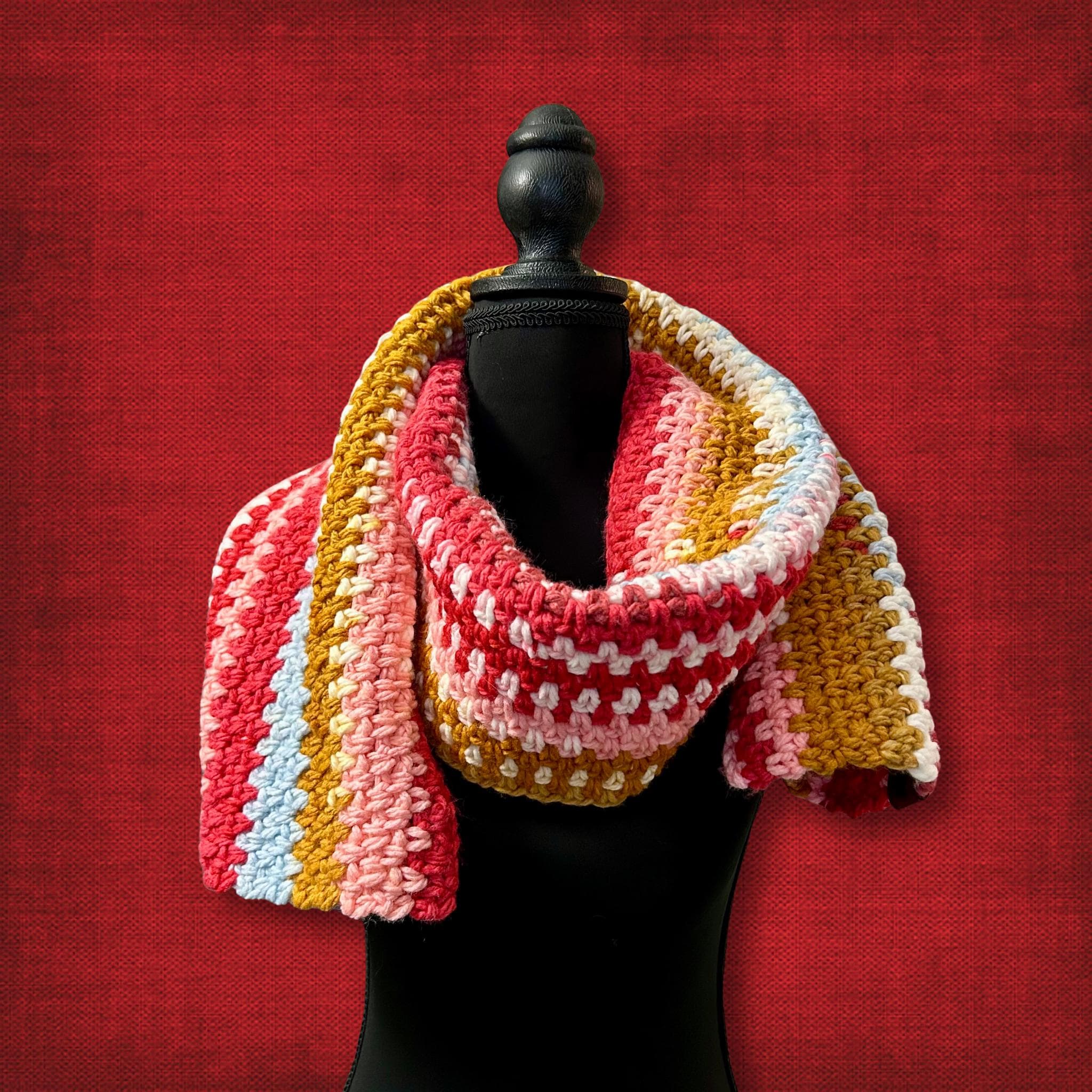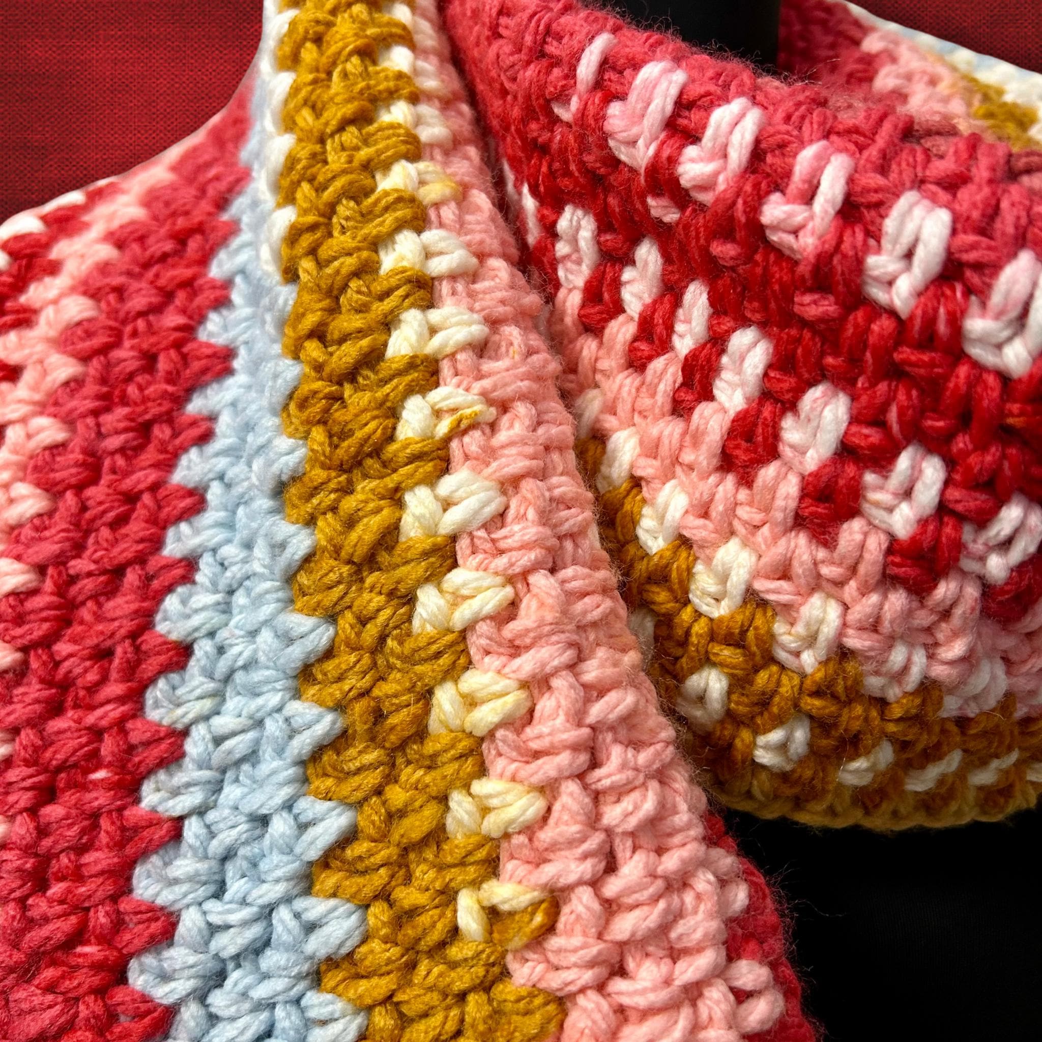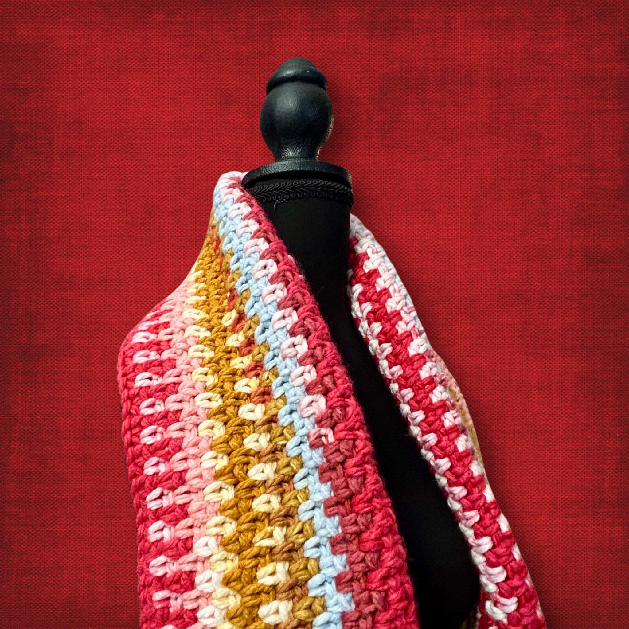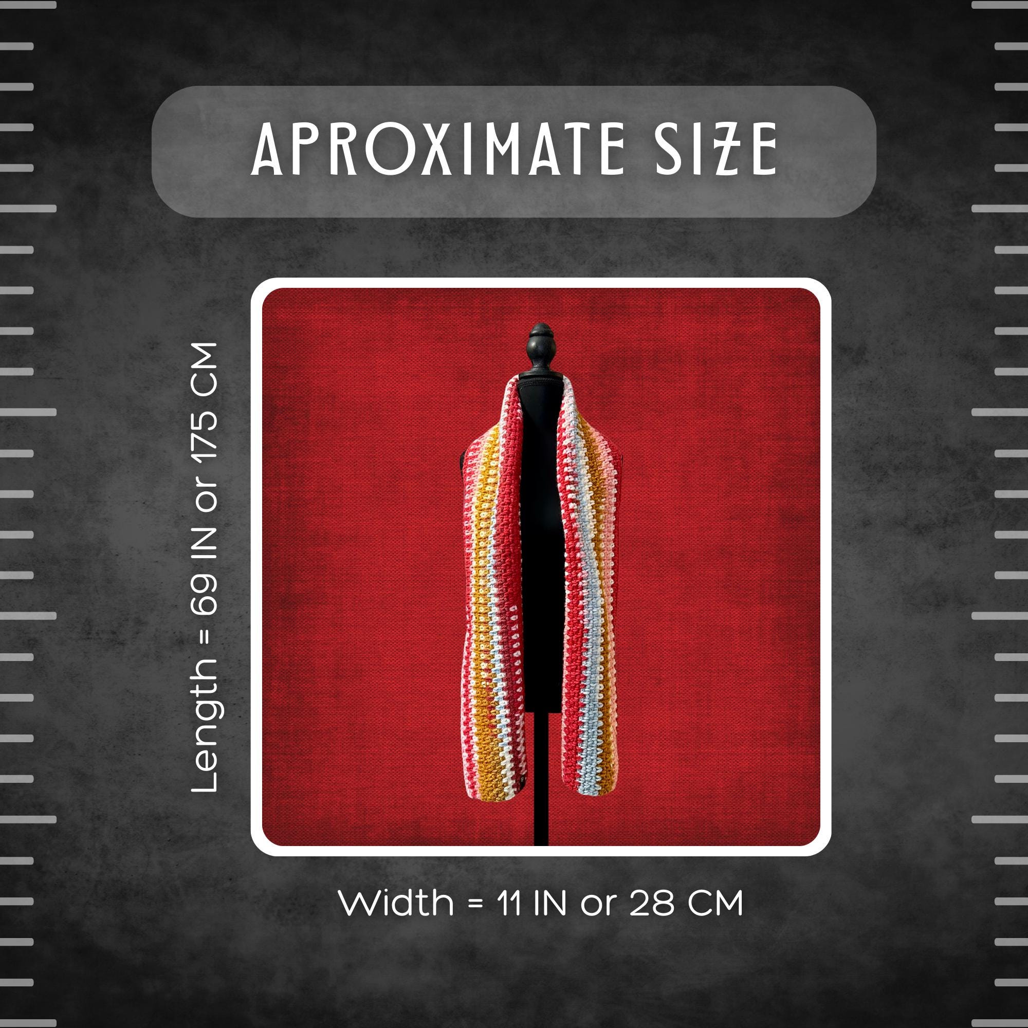 🟣 This scarf is soft and thick to keep you warm this winter. The colors remind me of Valentine's Day cookies. It's machine washable. See photos for measurements.